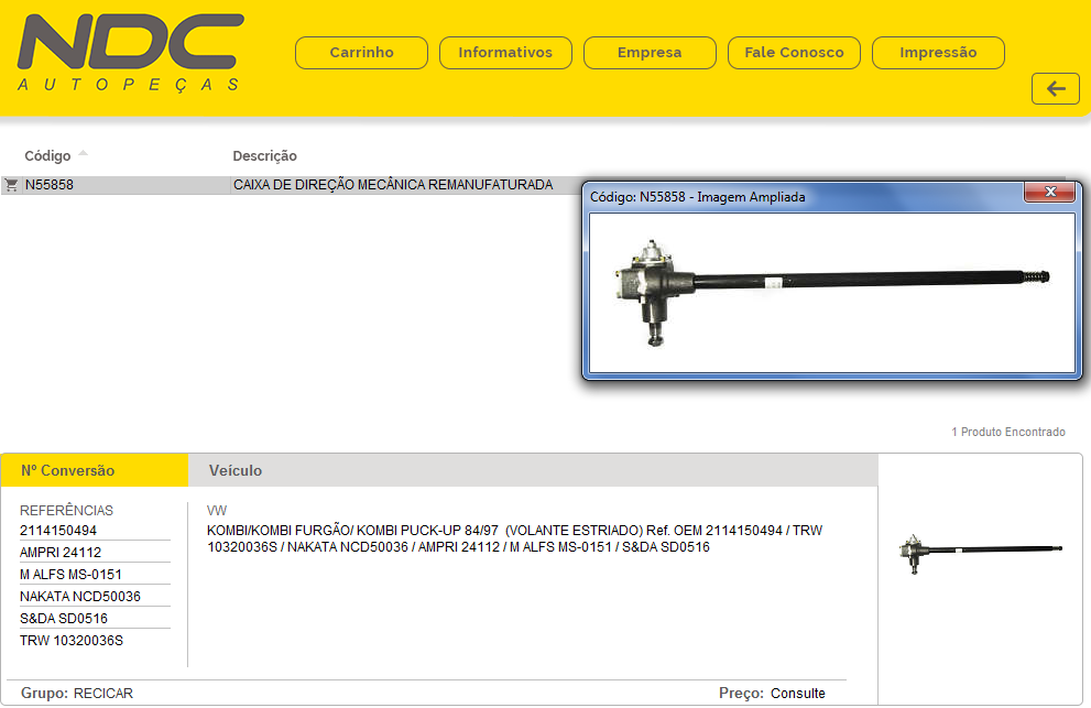Caixa de Direção Mecânica ( Volante Estriado )- " Remanufaturada" - top de linha