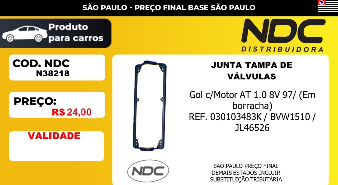 Junta da Tampa de Válvulas do motor.. ( em borracha ).